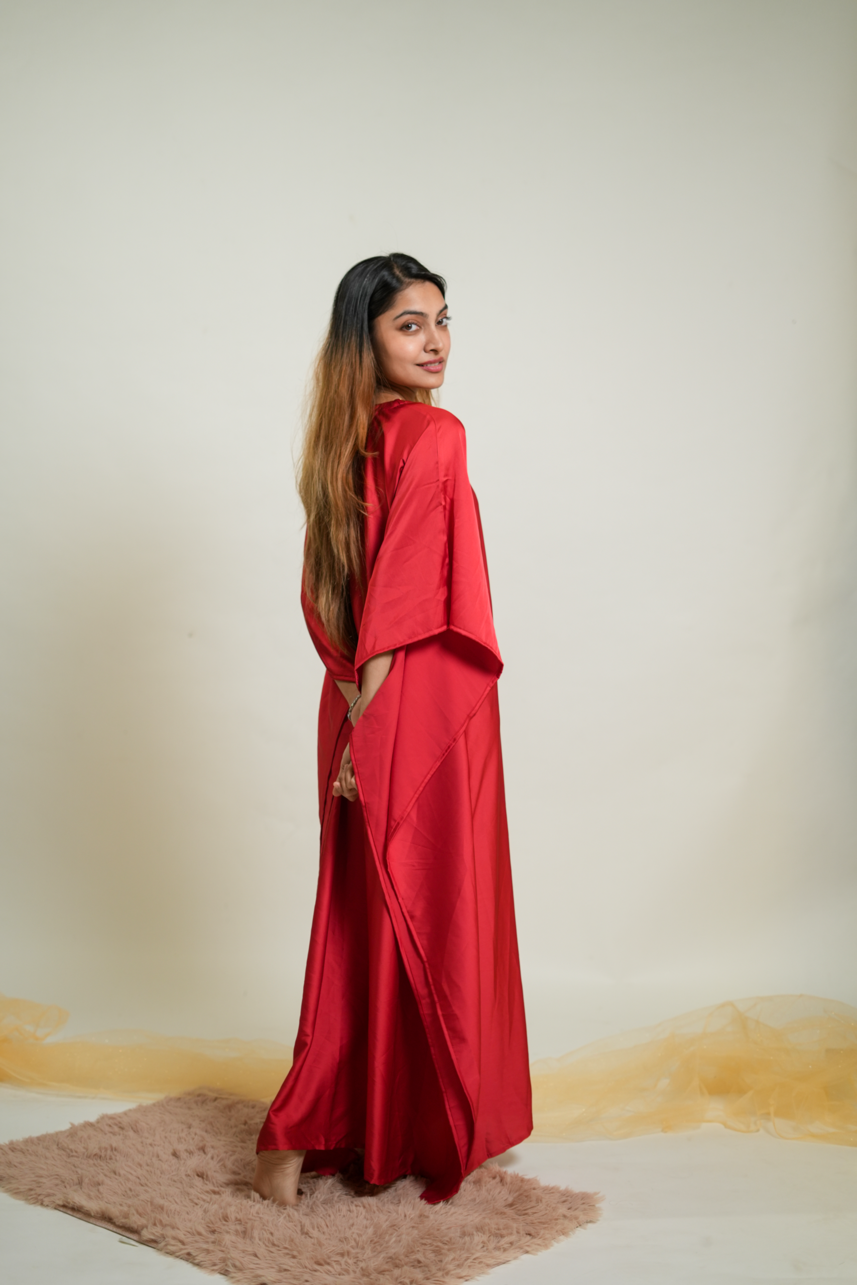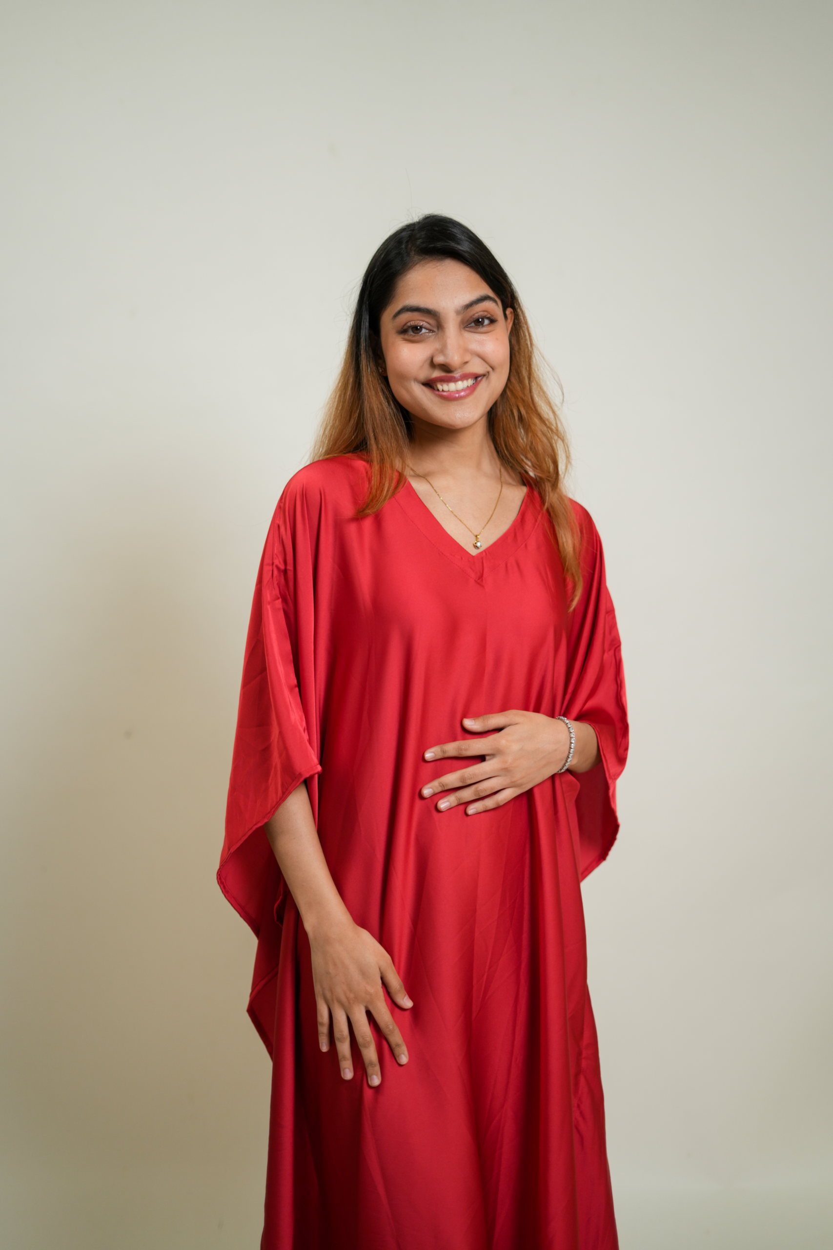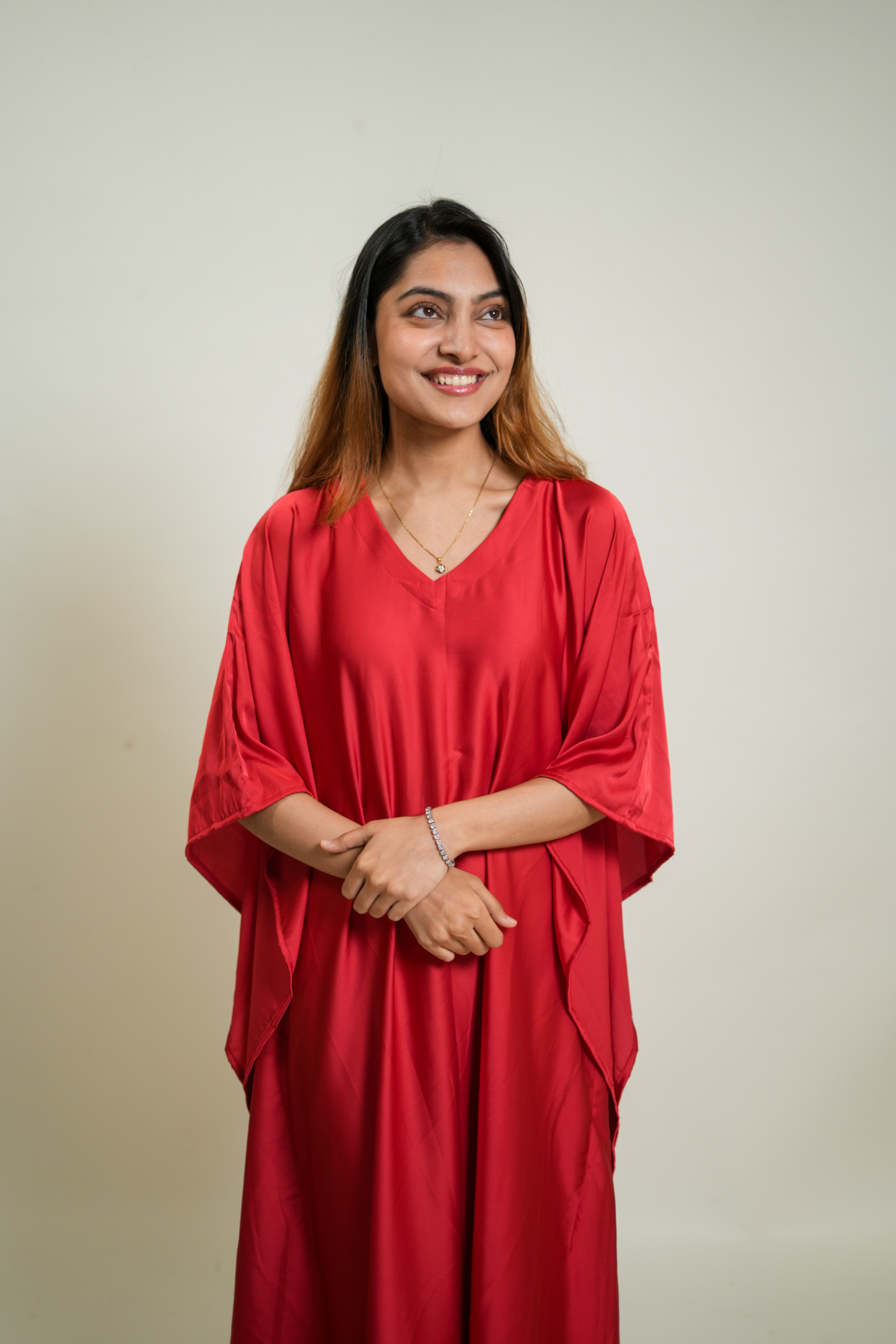 Crimson Red Premium Solid Silk Kaftan