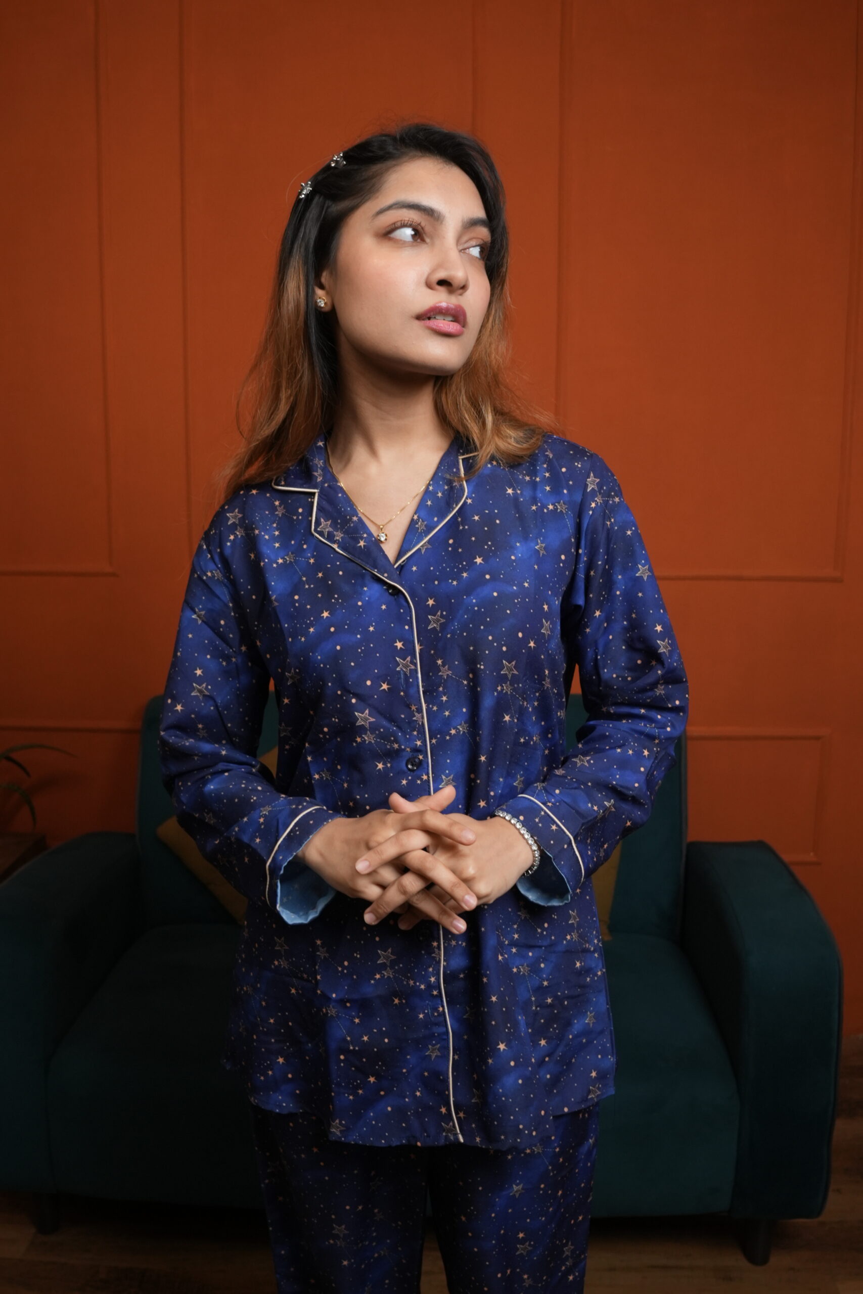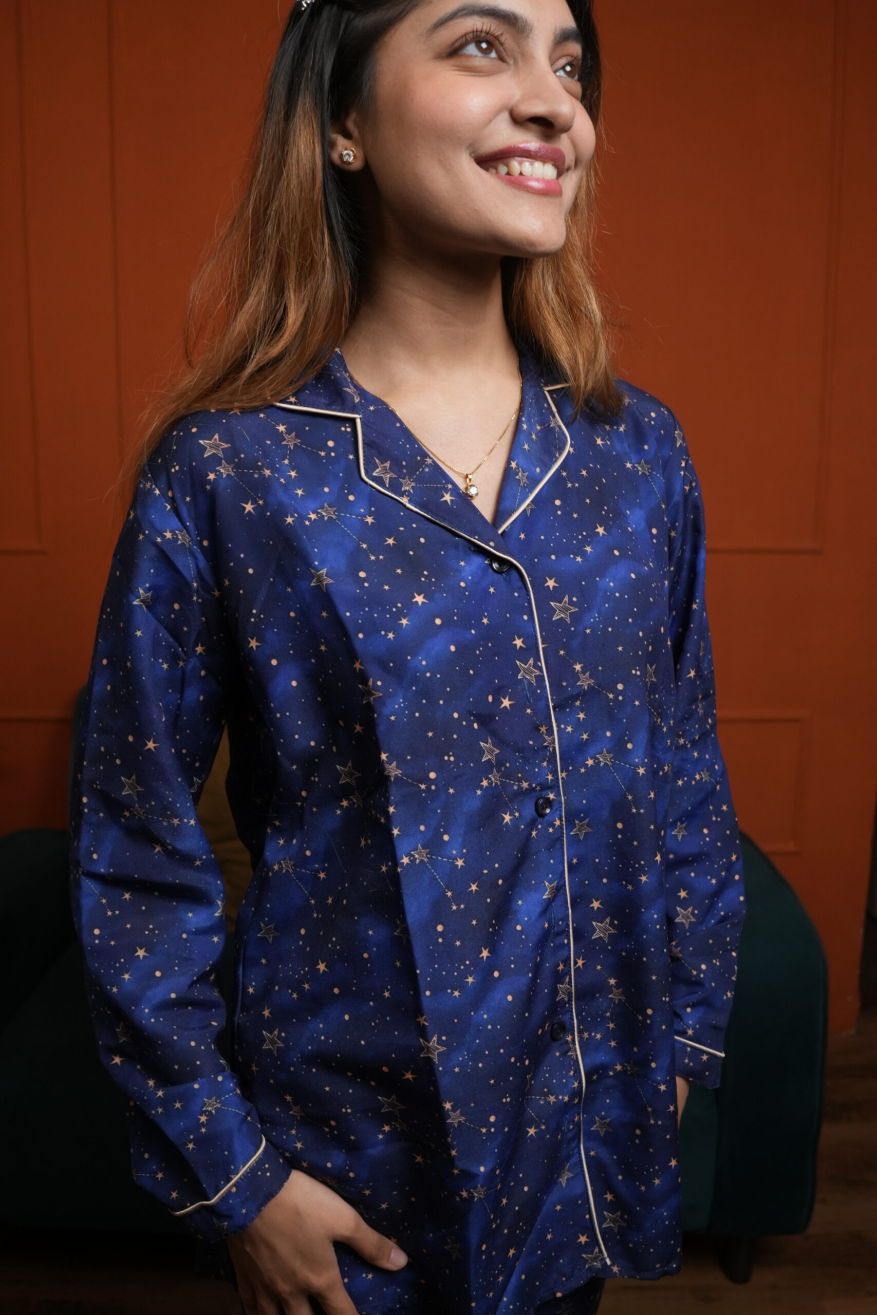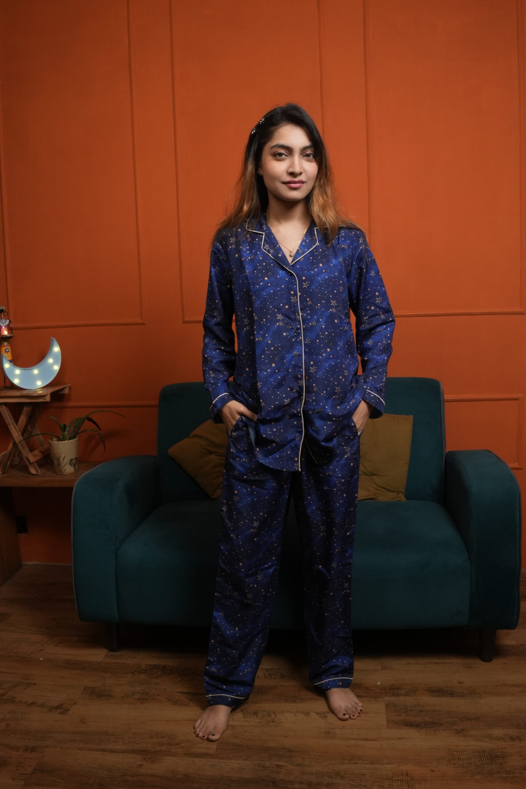Comfortable rich cotton pajama set to bring that sass and oomph in your life even while you nap! Get your hands on this super classy nightwear and attain utmost joy and comfort